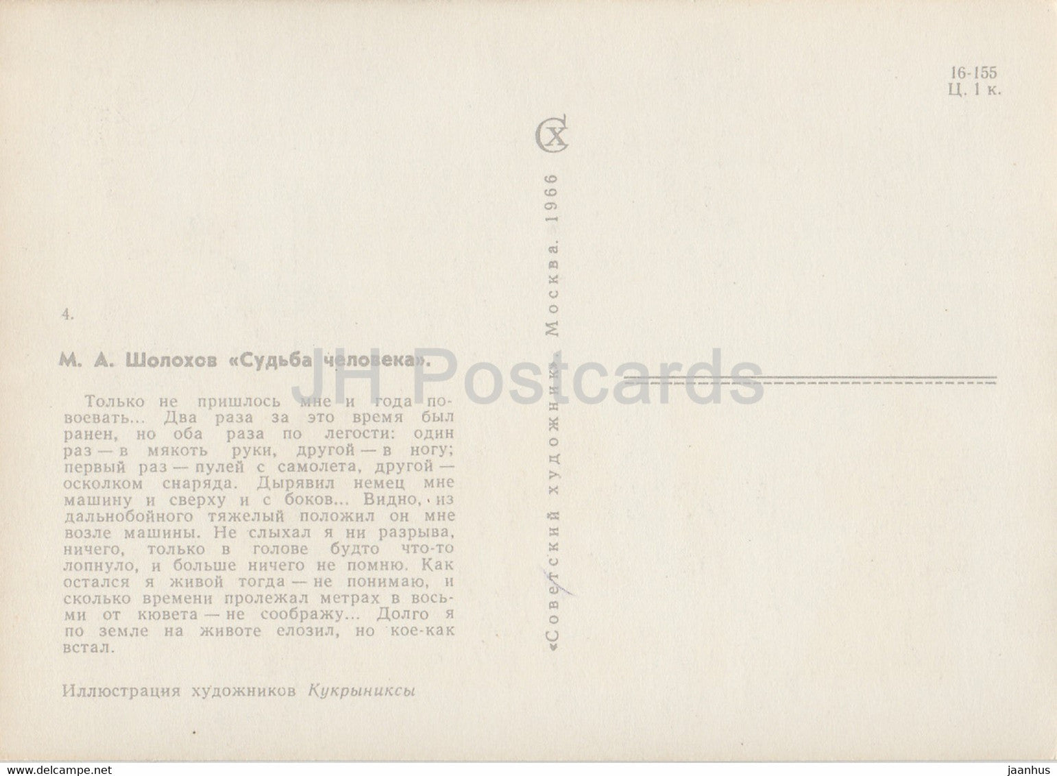 Fate of a Man by Mikhail Sholokhov - illustration by Kukryniksy - Injured - 1966 - Russia USSR - unused