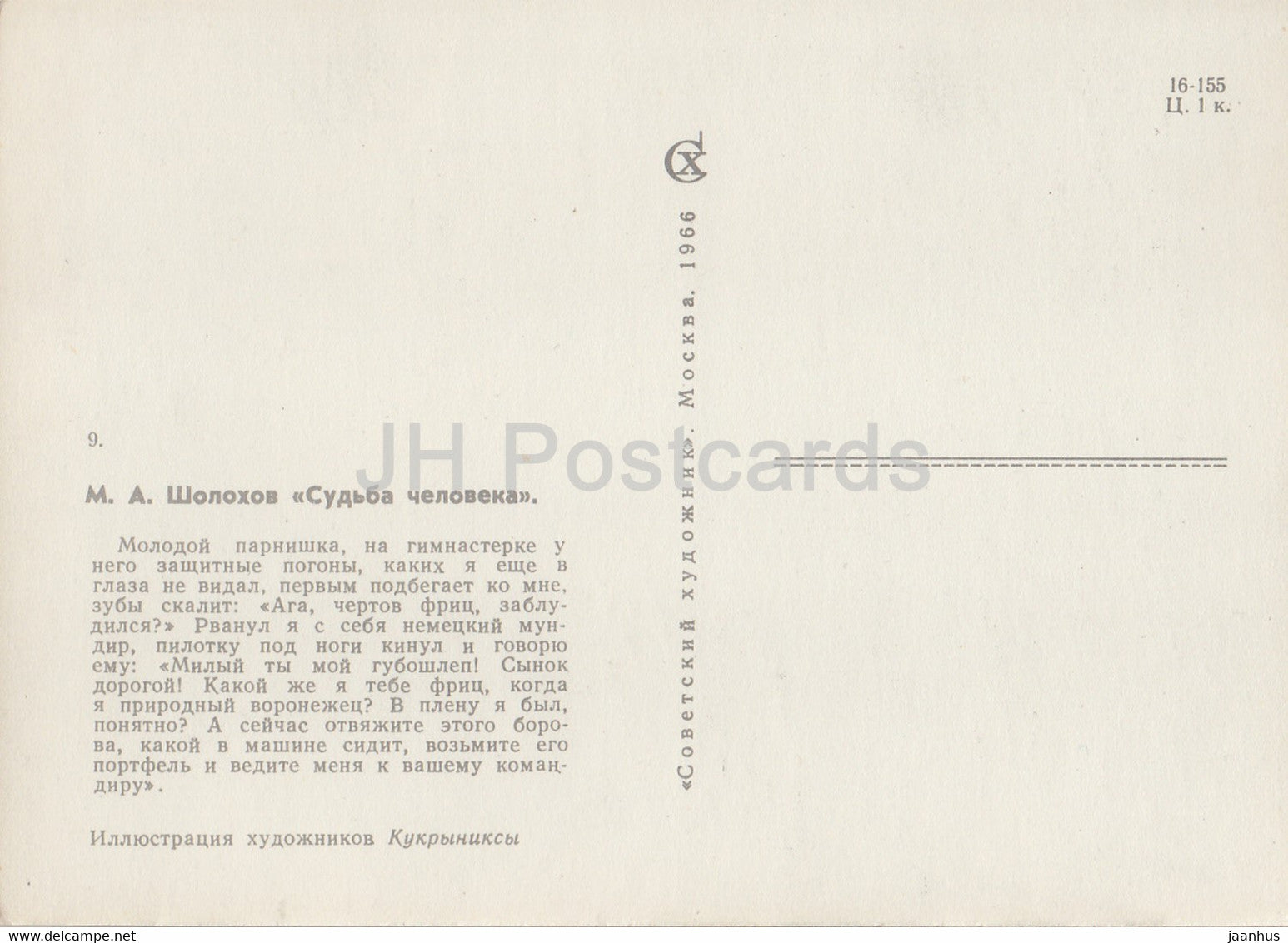 Fate of a Man by Mikhail Sholokhov - illustration by Kukryniksy - Soldier - Prisoner - 1966 - Russia USSR - unused