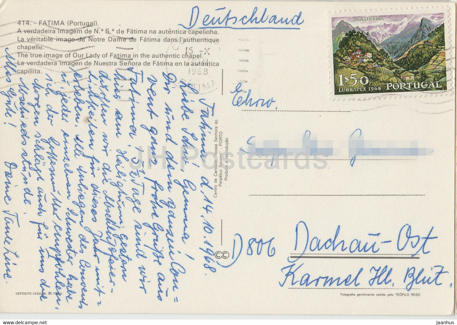 Fatima - a verdadeira imagem de Fatima na autentica capelinha - chapel - 414 - 1968 - Portugal - used