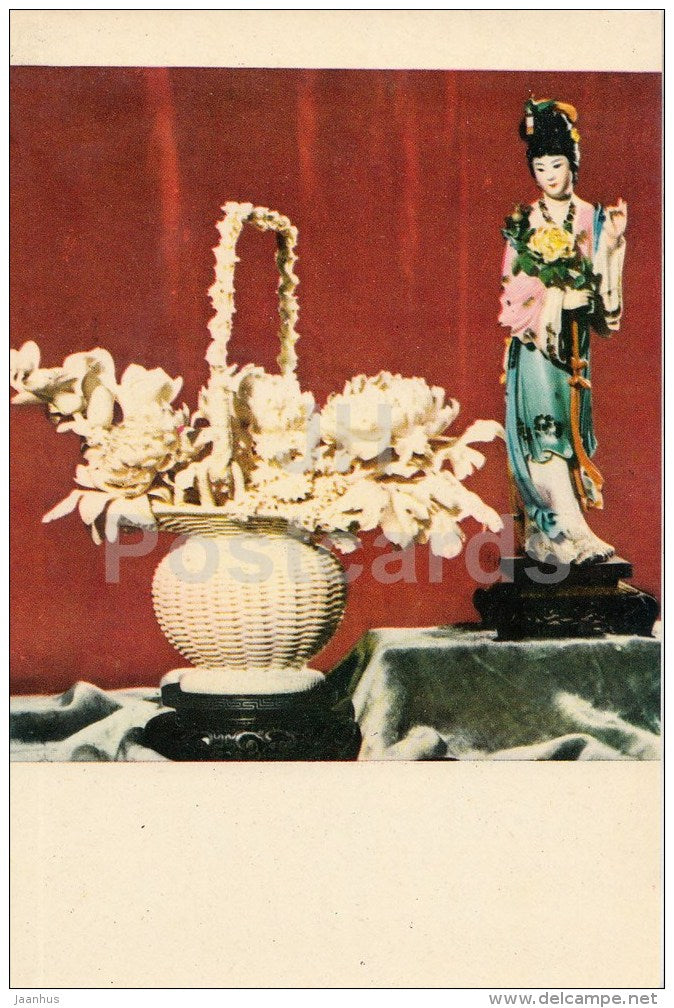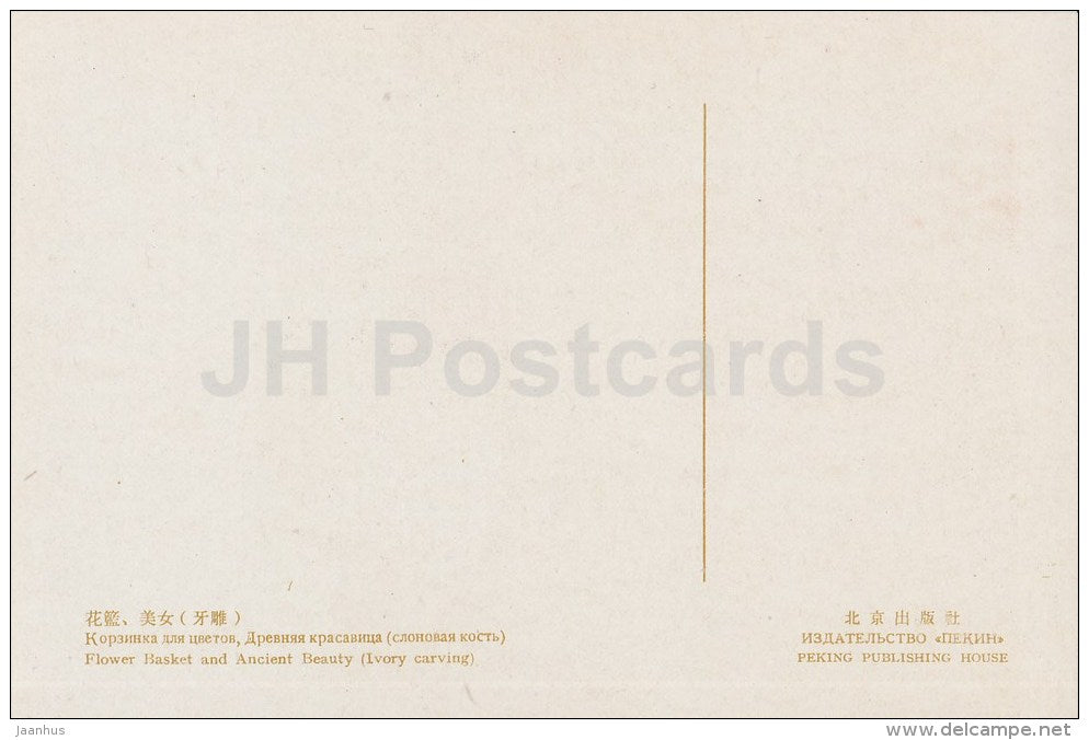 Flower Basket and Ancient Beauty (Ivory Carving) - Peking Art Handicrafts - Chinese art - old postcard - China - unused