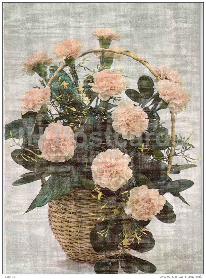 flowers composition - carnations in the basket - 1987 - Russia USSR - used