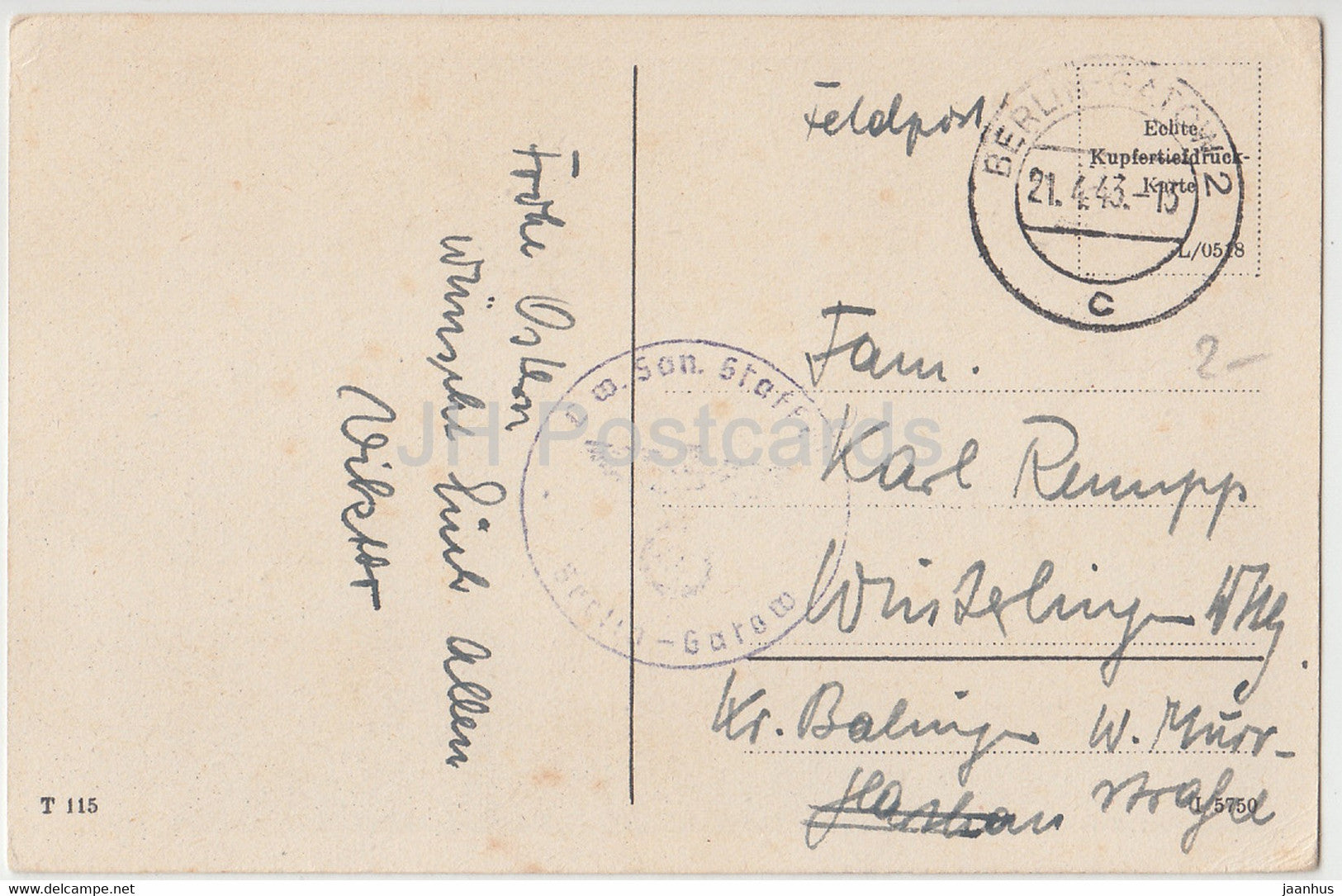 flowers in a vase - lily of the valley - peonies - flowers - T 115 - Feldpost - old postcard - 1943 - used