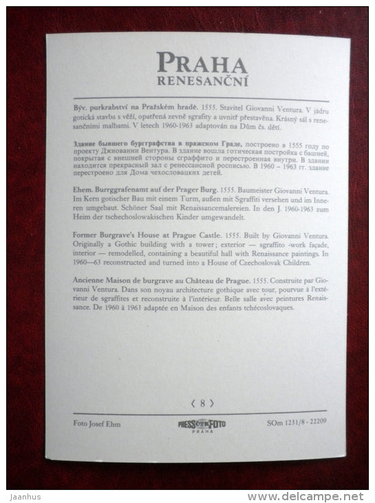Former Burgrave`s House at Prague Castle - Prague - CZECH REPUBLIC, CZECHOSLOVAKIA - unused