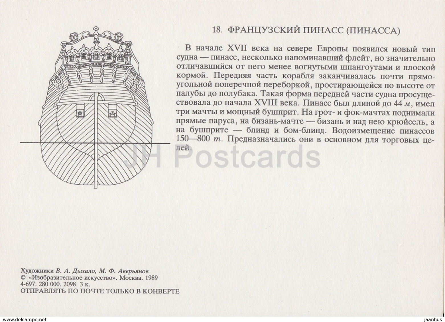 French pinnace - sailing ship - illustration - 1989 - Russia USSR - unused