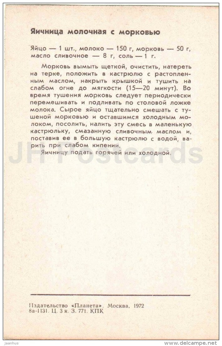 fried milk with carrots - Food for Children - dishes - cuisine - 1972 - Russia USSR - unused