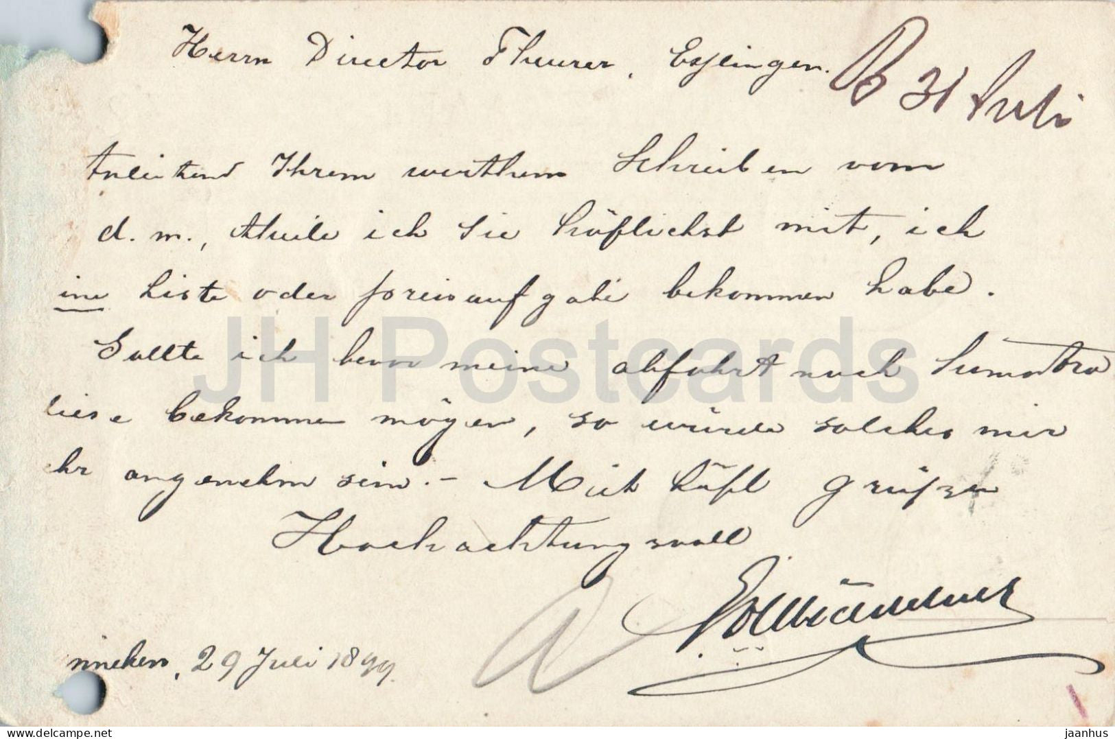From Breda to Maschinenfabrik Esslingen Correspondence card - old postcard - 1899 - Netherlands to Germany - used