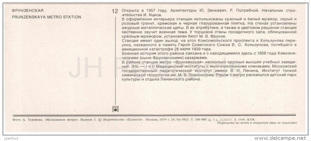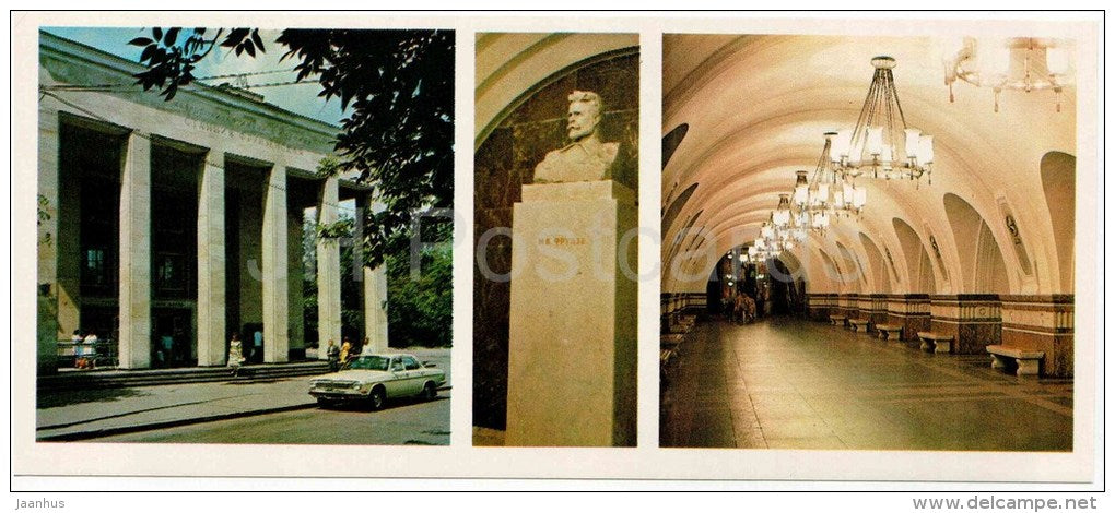 Frunzeskaya Metro Station - sculpture of Frunze - car Volga - subway - Moscow - 1979 - Russia USSR - unused
