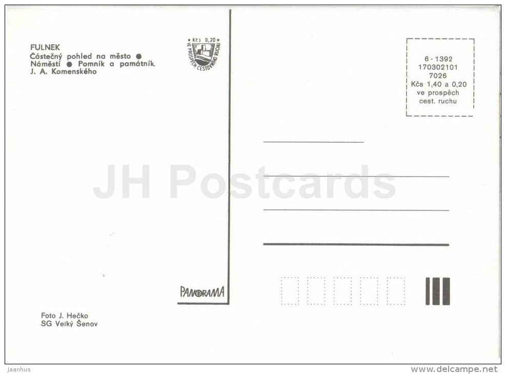 Fulnek - square - monument to Komensky - architecture - town views - Czechoslovakia - Czech - unused
