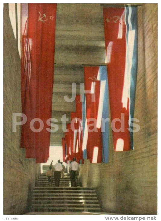Gallery - Flags of Soviet Republics - Salaspils Memorial Ensemble - old postcard - Latvia USSR - unused