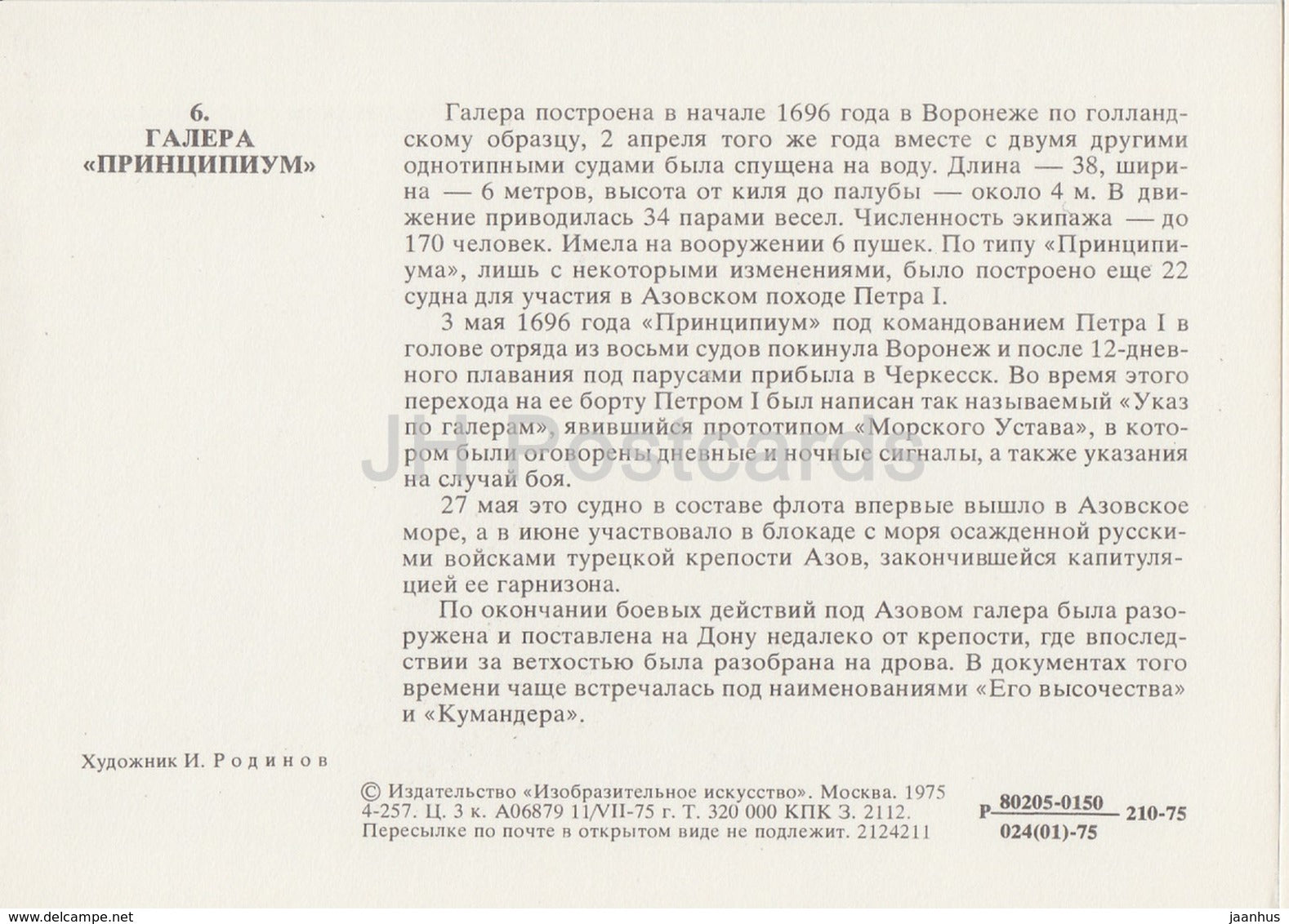 Galley Principium - sailing ship - History of Russian Navy - 1975 - Russia USSR - unused