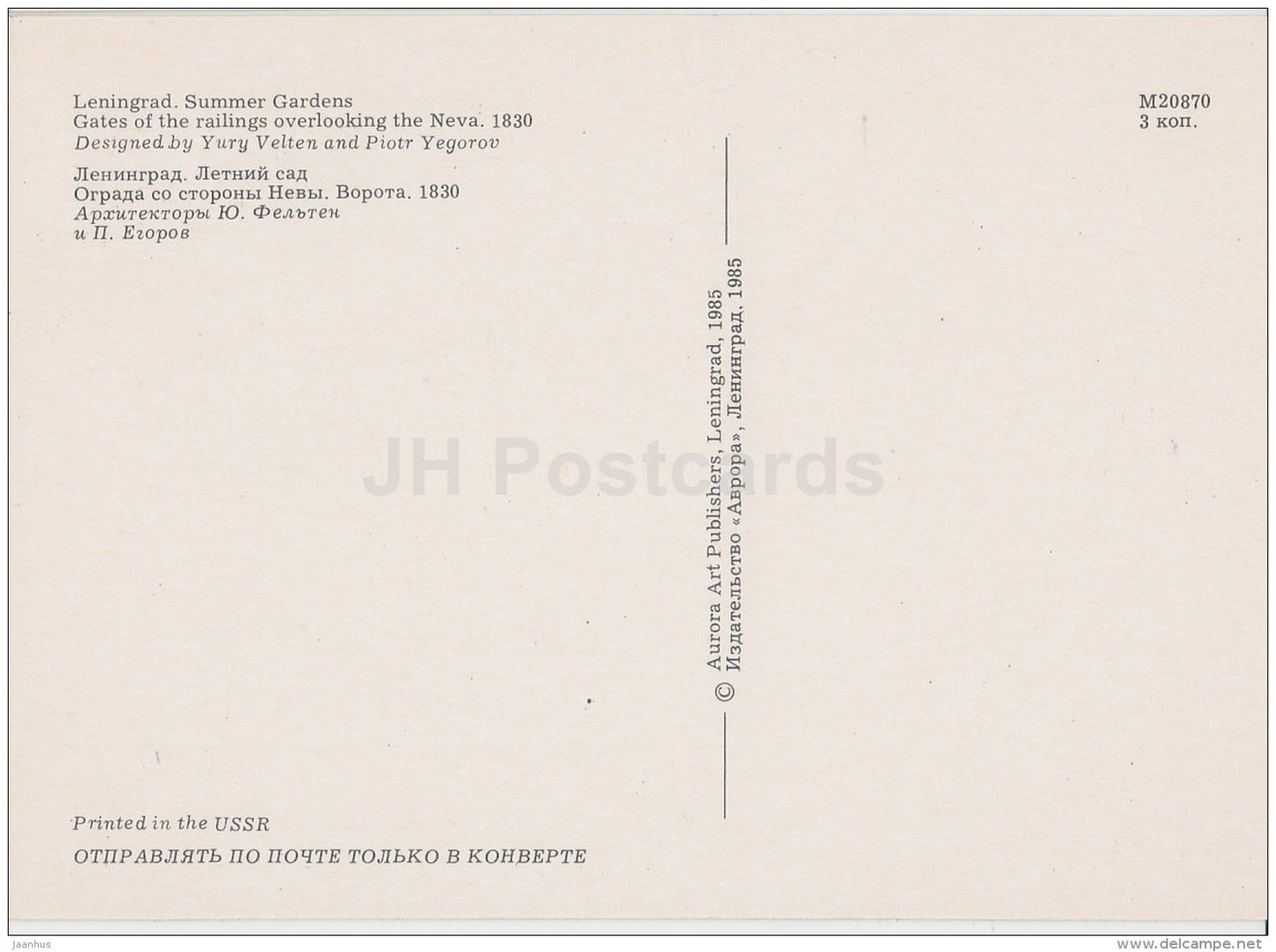 Gates of the railings overlooking the Neva - Summer Gardens - Leningrad - St. Petersburg - 1985 - Russia USSR - unused