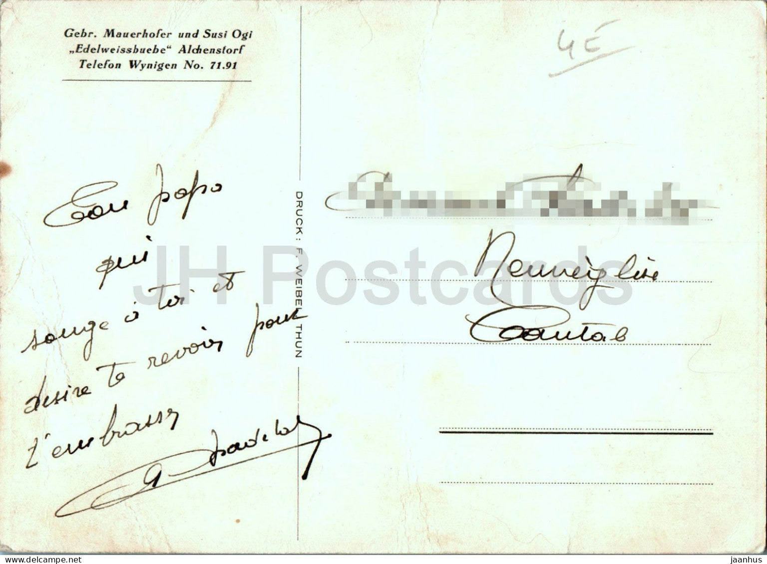 Gebr Mauerhofer und Susi Ogi - Edelweissbuebe - Alchenstorf - folk music - folk costume - Switzerland - used