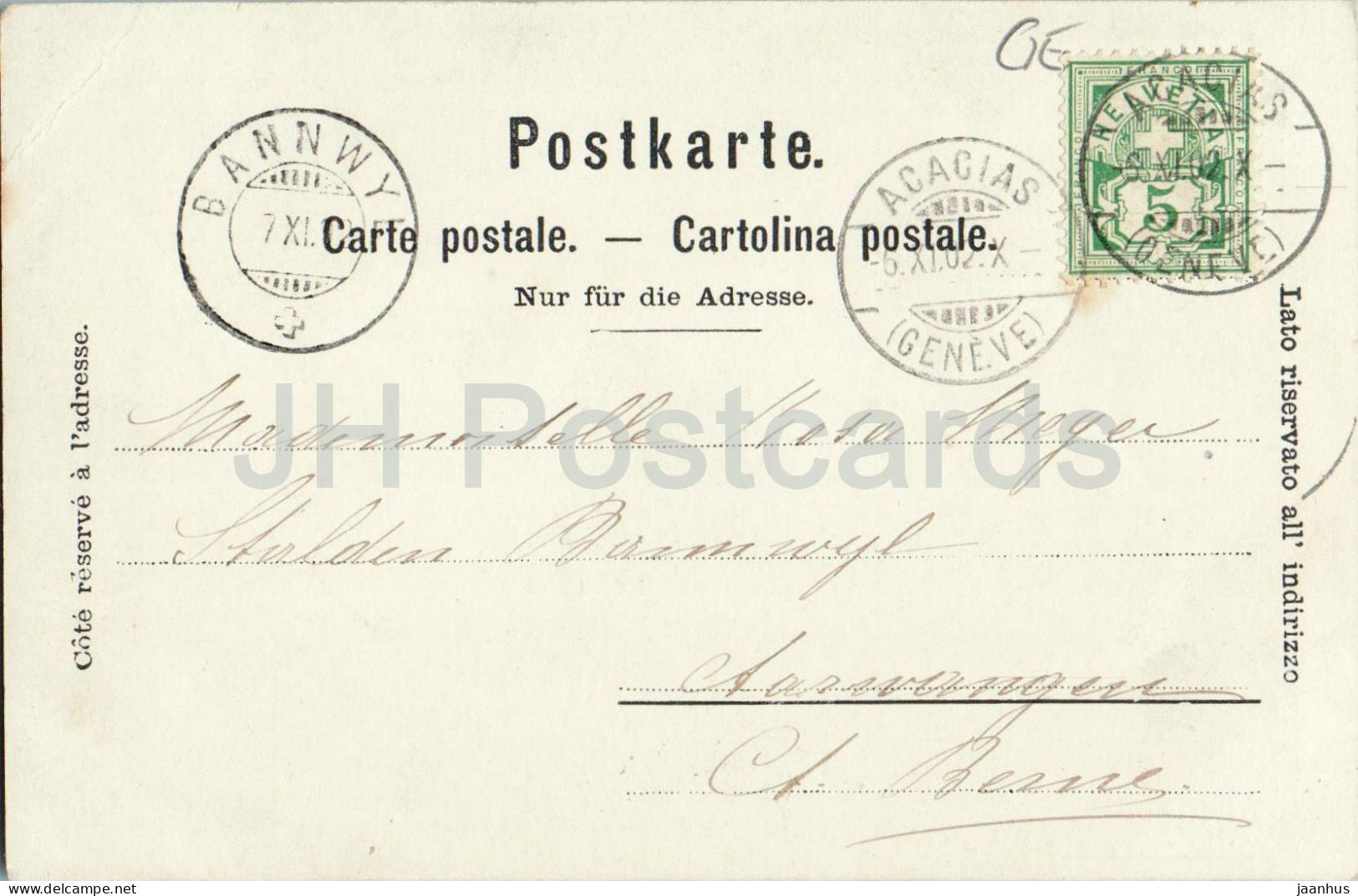Geneve - Geneva Pont du Mont-Blanc - panorama - river Rhone and mountains - old postcard - 1902 - Switzerland - used