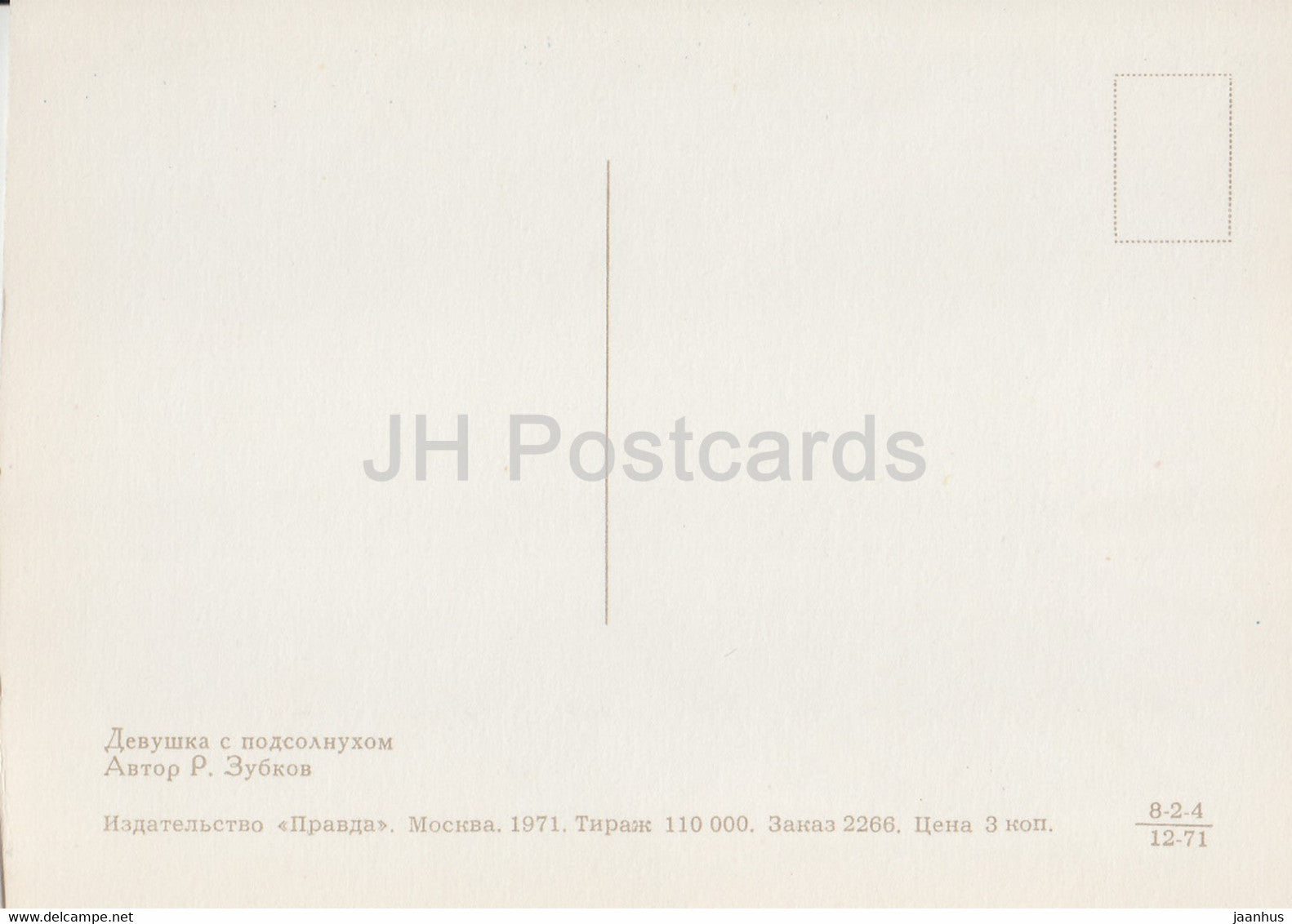Girl with Sunflower - Flower Art - 1971 - Russia USSR - unused