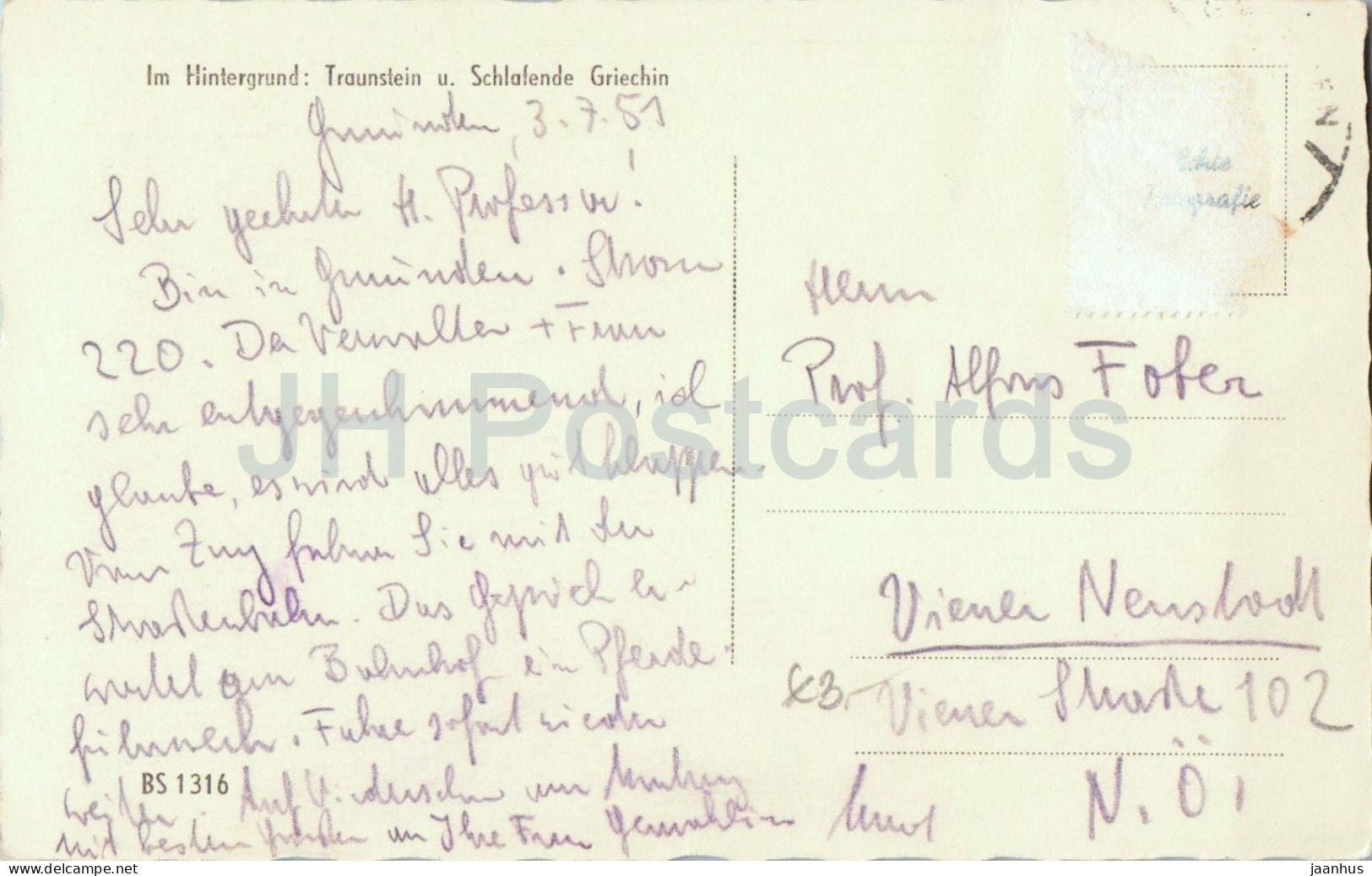 Gmunden - Schloss Orth - Traunstein - castle - lake view with mountains - BS 1316 - old postcard - 1951 - Austria - used