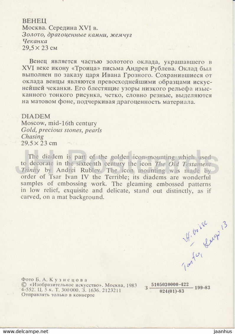 Gold and Silverwork in old Russia - Diadem, 16th century - 1983 - Russia - USSR - used