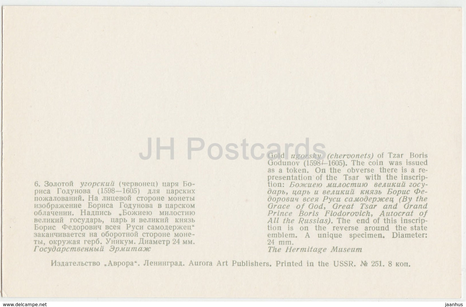 Gold Ugorsky (Chervonets) of Tsar Boris Godunov , 16th century - Rare Russian Coins - 1971 - Russia USSR - unused