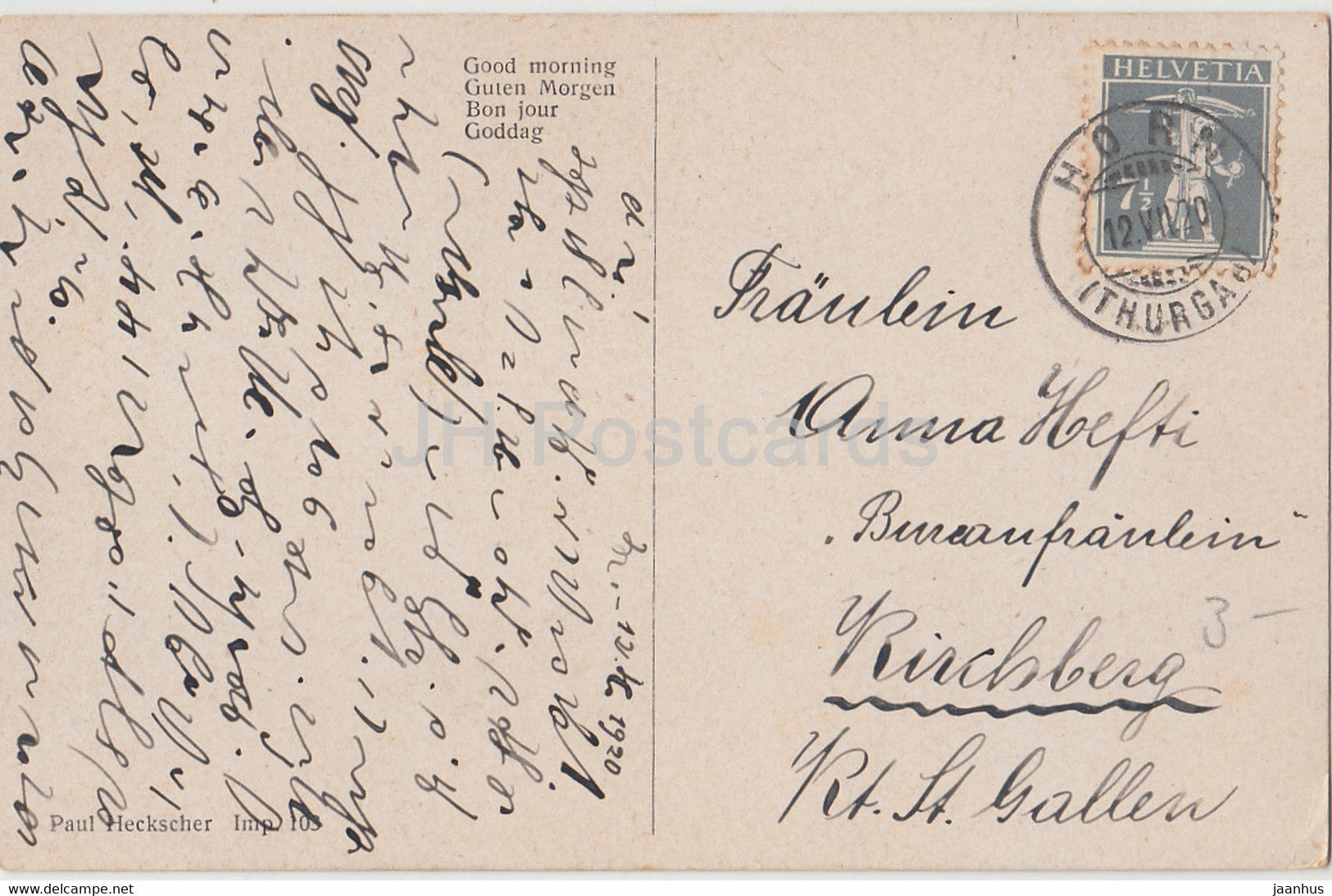 Good Morning - boy - children - illustration - Paul Heckscher - old postcard - 1920 - used