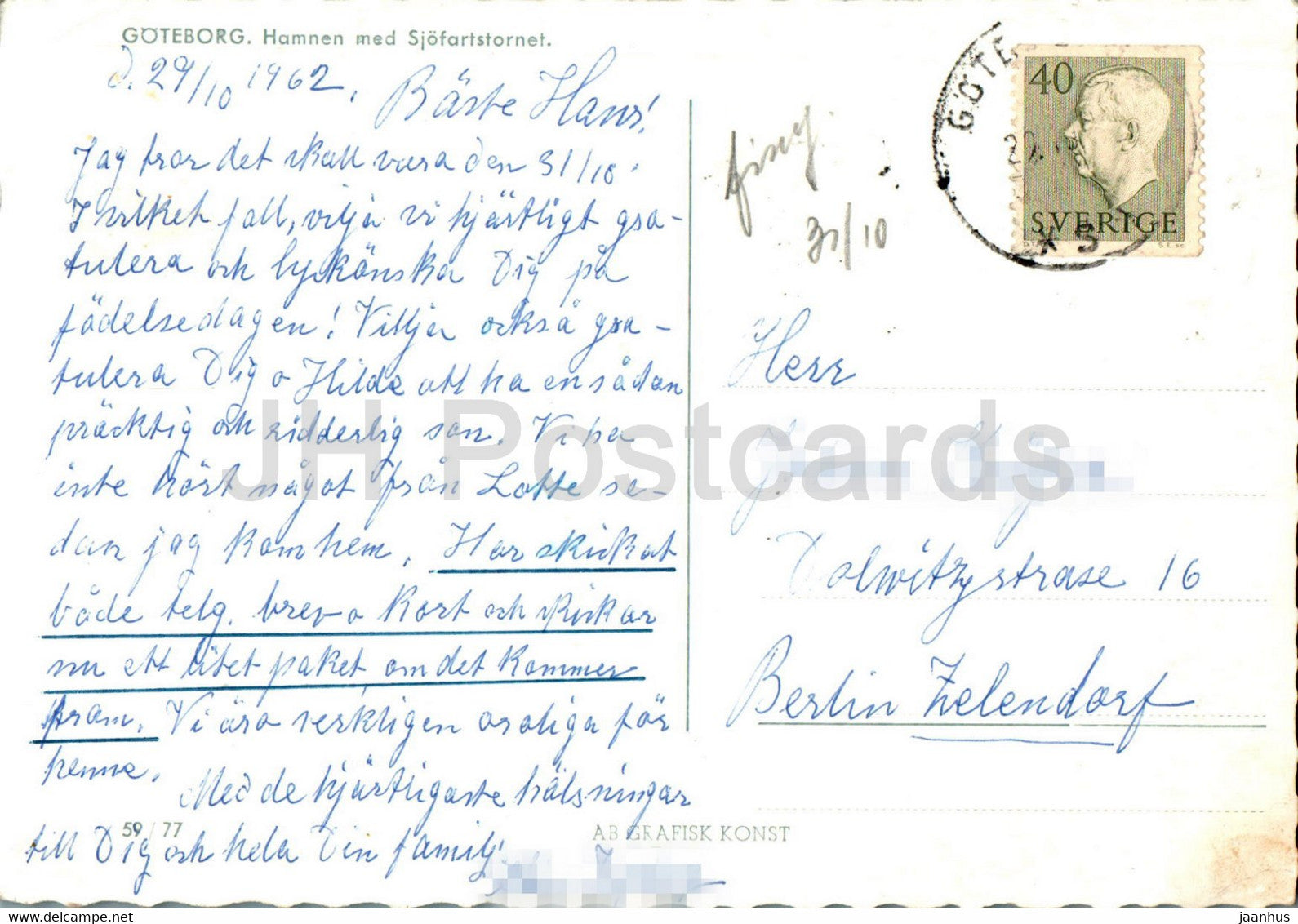 Goteborg - Hamnen med Sjofmanstornet - ship - port - 1962 - Sweden - used