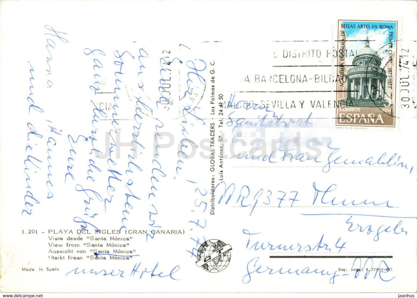 Gran Canaria - Playa del Ingles - Vista desde Santa Monica - hotel - 1974 - Spain - used