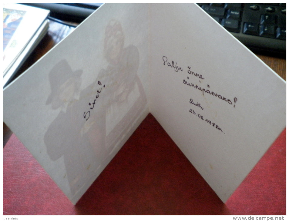 Greeting Card - family in Estonian Folk Costumes - 1988 - Estonia USSR - used