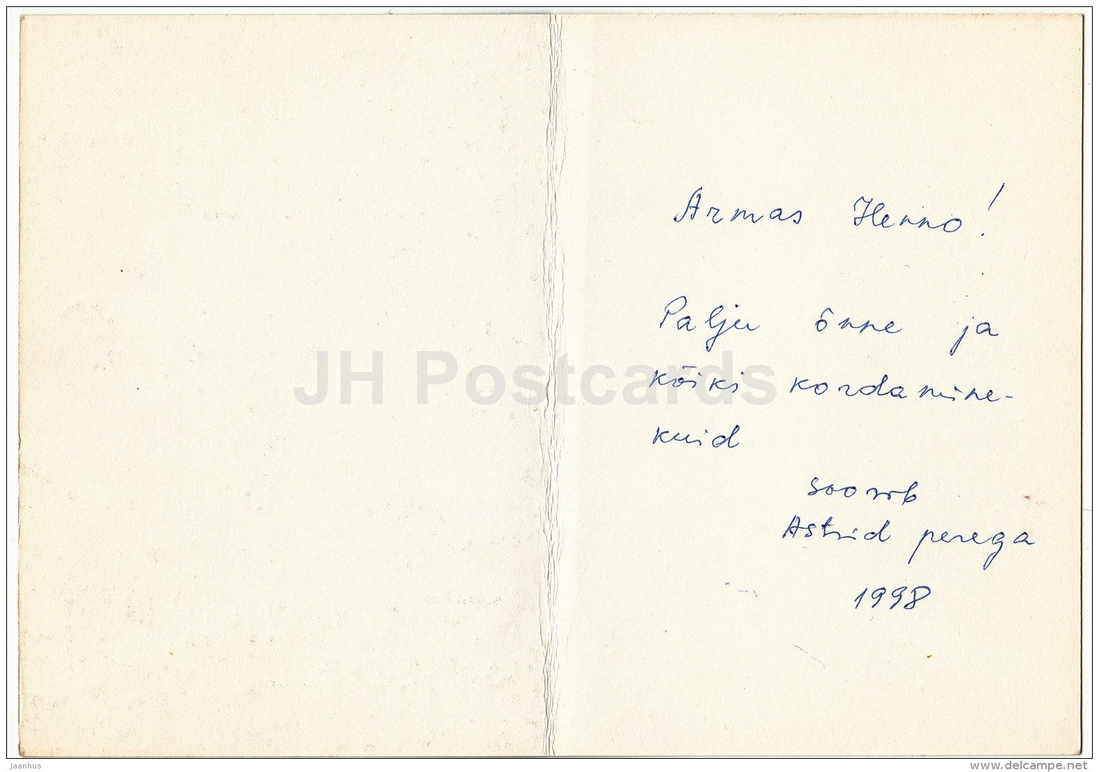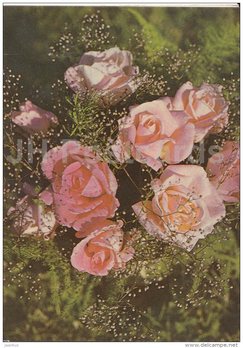 greeting card - pink roses - 1985 - Estonia USSR - used