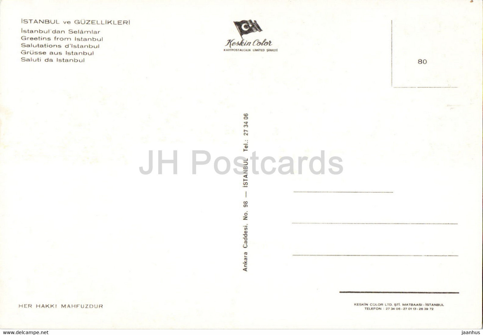 Greetings from Istanbul - Taksim monument - Kiz Kulesi - 80 - Keskin - Turkey - unused