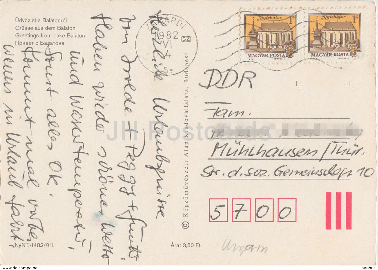 Greetings from lake Balaton - beach - sailing boat - cars - multiview - 1982 - Hungary - used