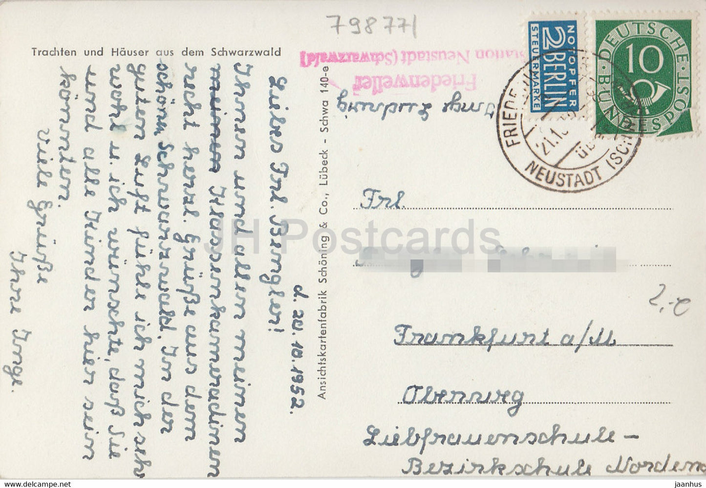 Gruss aus dem Schwarzwald - folk costumes - old postcard - 1952 - Germany - used