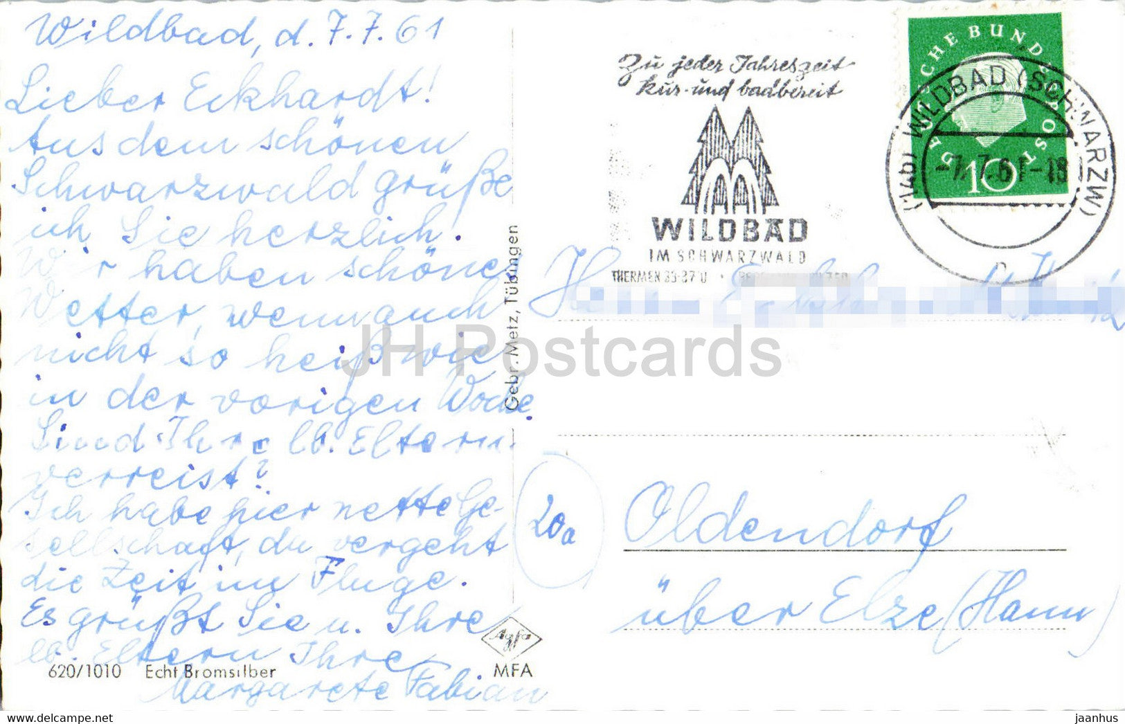 Grusse aus Wildbad im Schwarzwald - Kurplatz - Sommerberg - funicular - Olgastrasse old postcard - 1961 - Germany - used