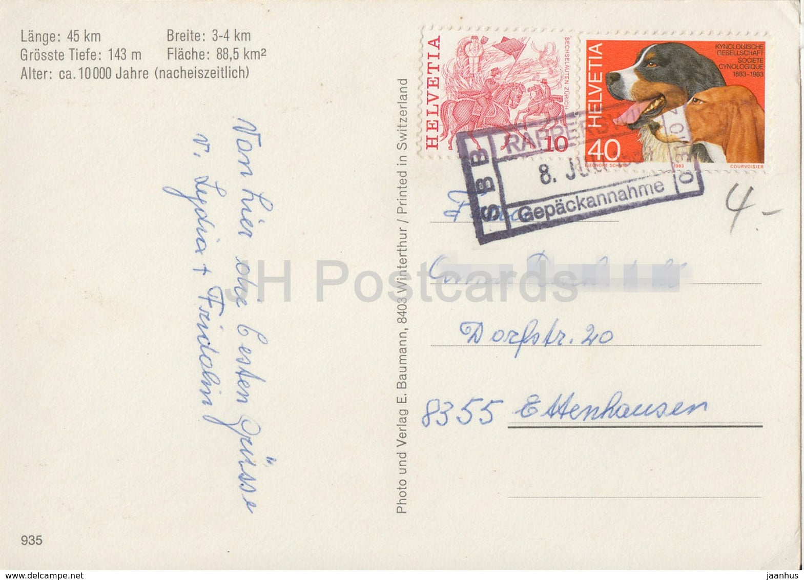 Grusse vom Zurichsee - ship - train - ferry - steamer - gepackannahme seal - 1984 - Switzerland - used