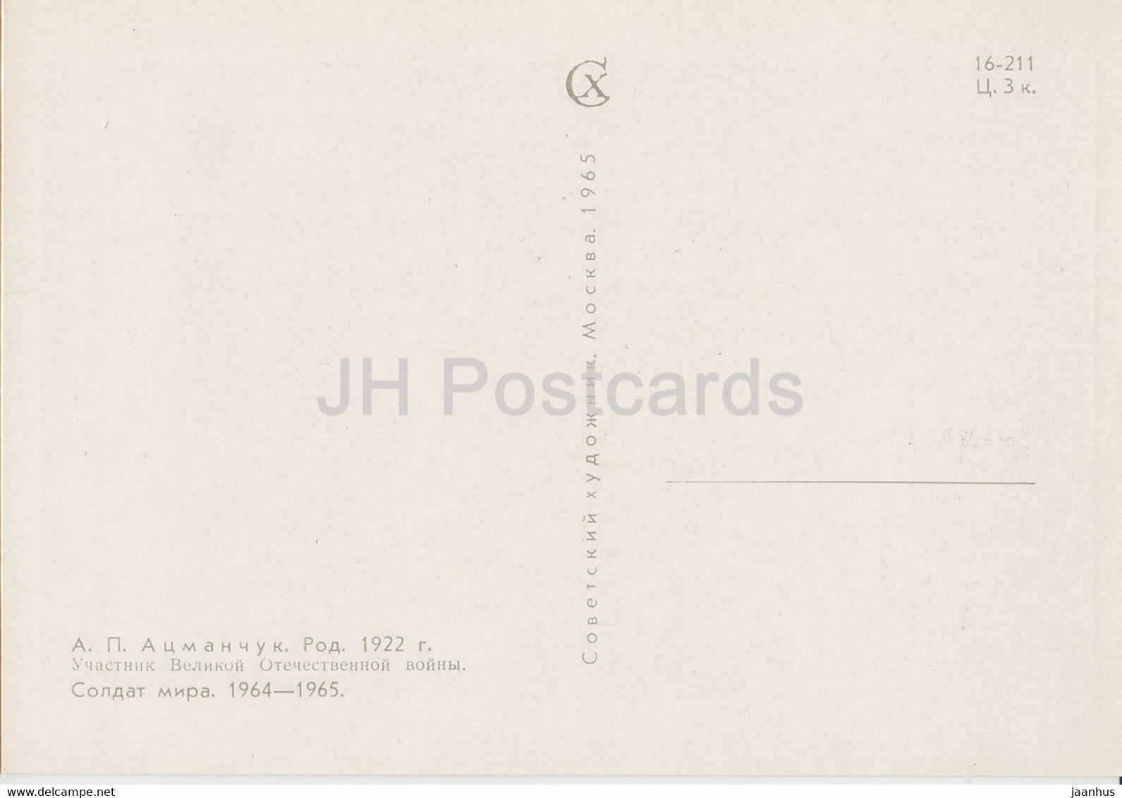 Guarding the World - painting by A. Atsmanchuk - Soldier for peace - military - art - 1965 - Russia USSR - unused