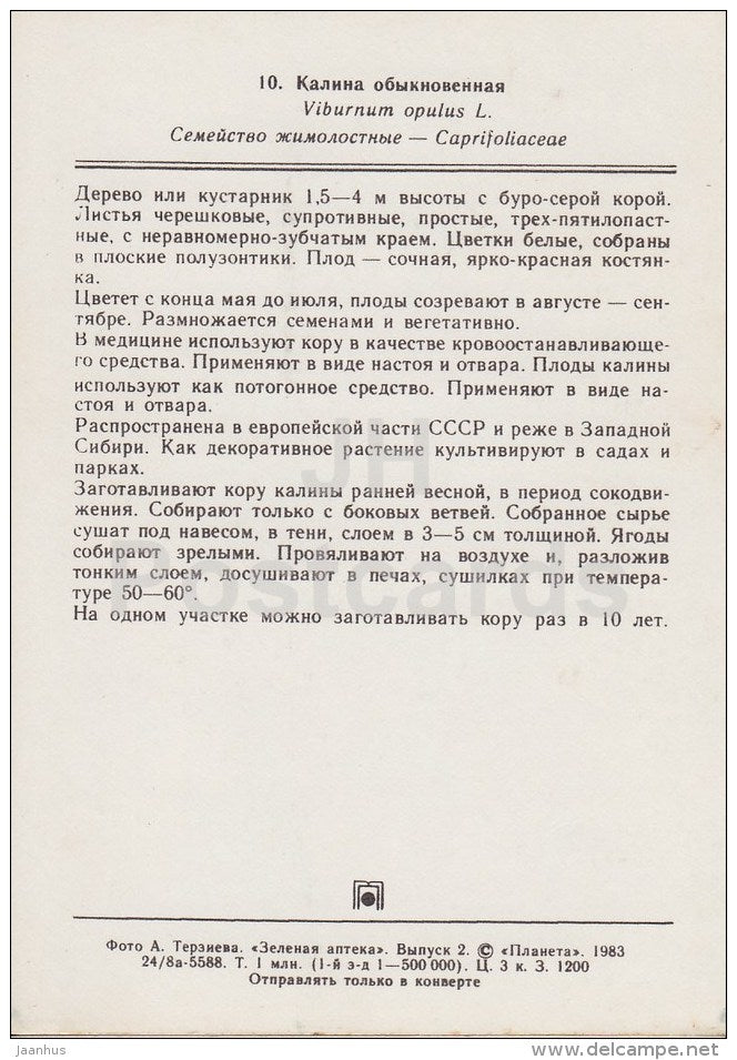 Guelder-rose - Viburnum opulus - Medicinal Plants - 1983 - Russia USSR - unused