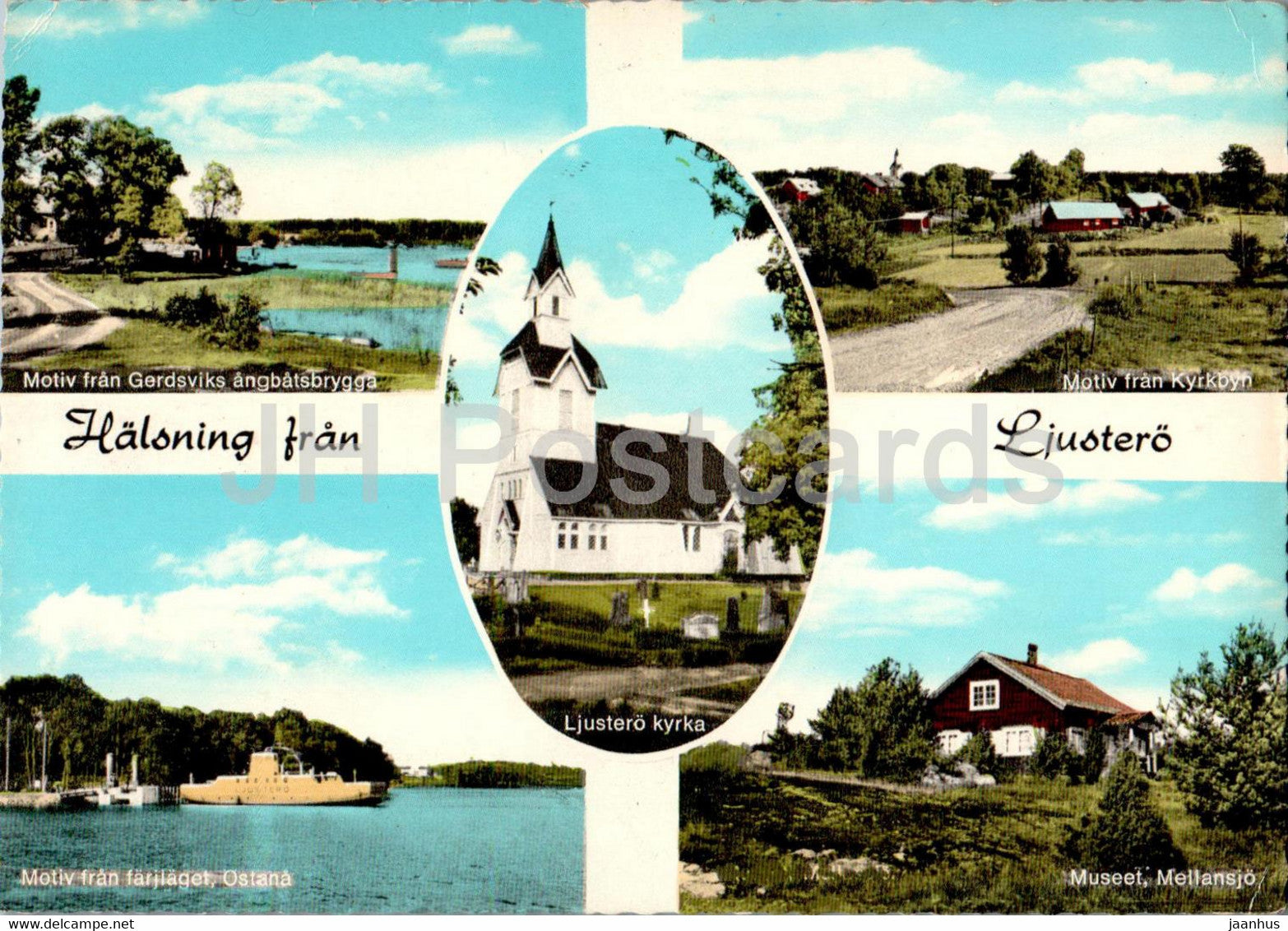 Halsning fran Ljustero - Gerdsvik - Ostana - Kyrkbyn - Mellansjo - multiview - 176 - 1973 - Sweden - used