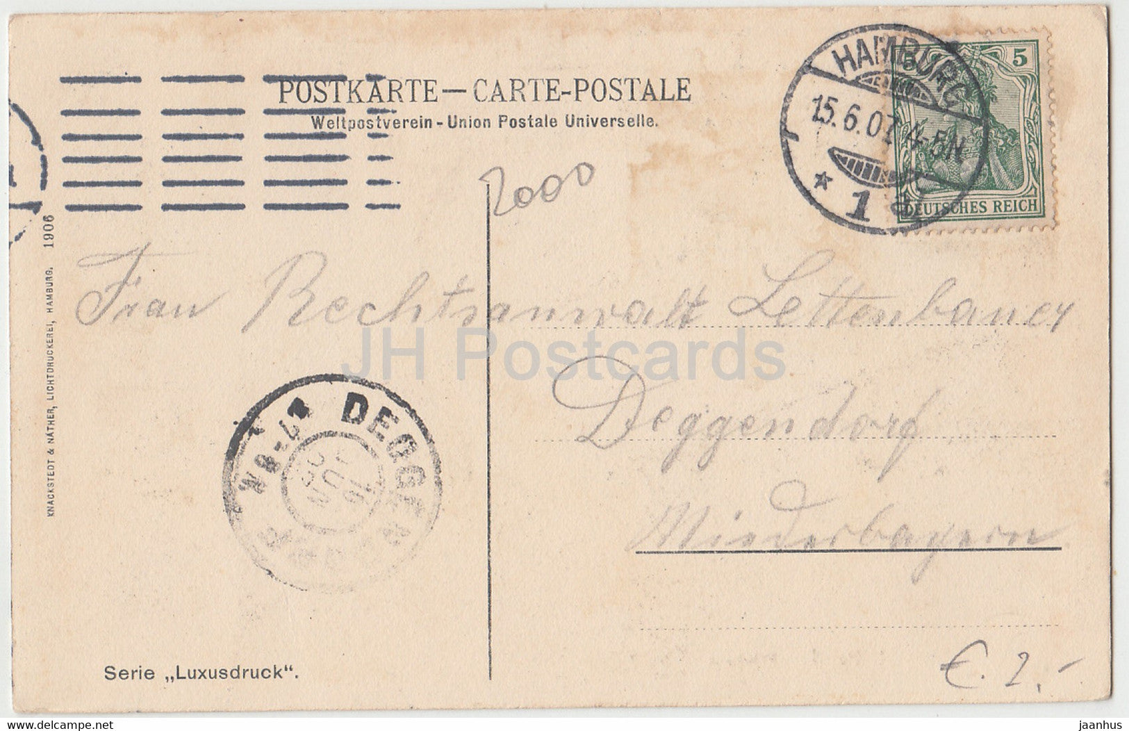 Hamburg - St Pauli - Fahrhaus - Serie Luxusdruck - old postcard - 1907 - Germany - used