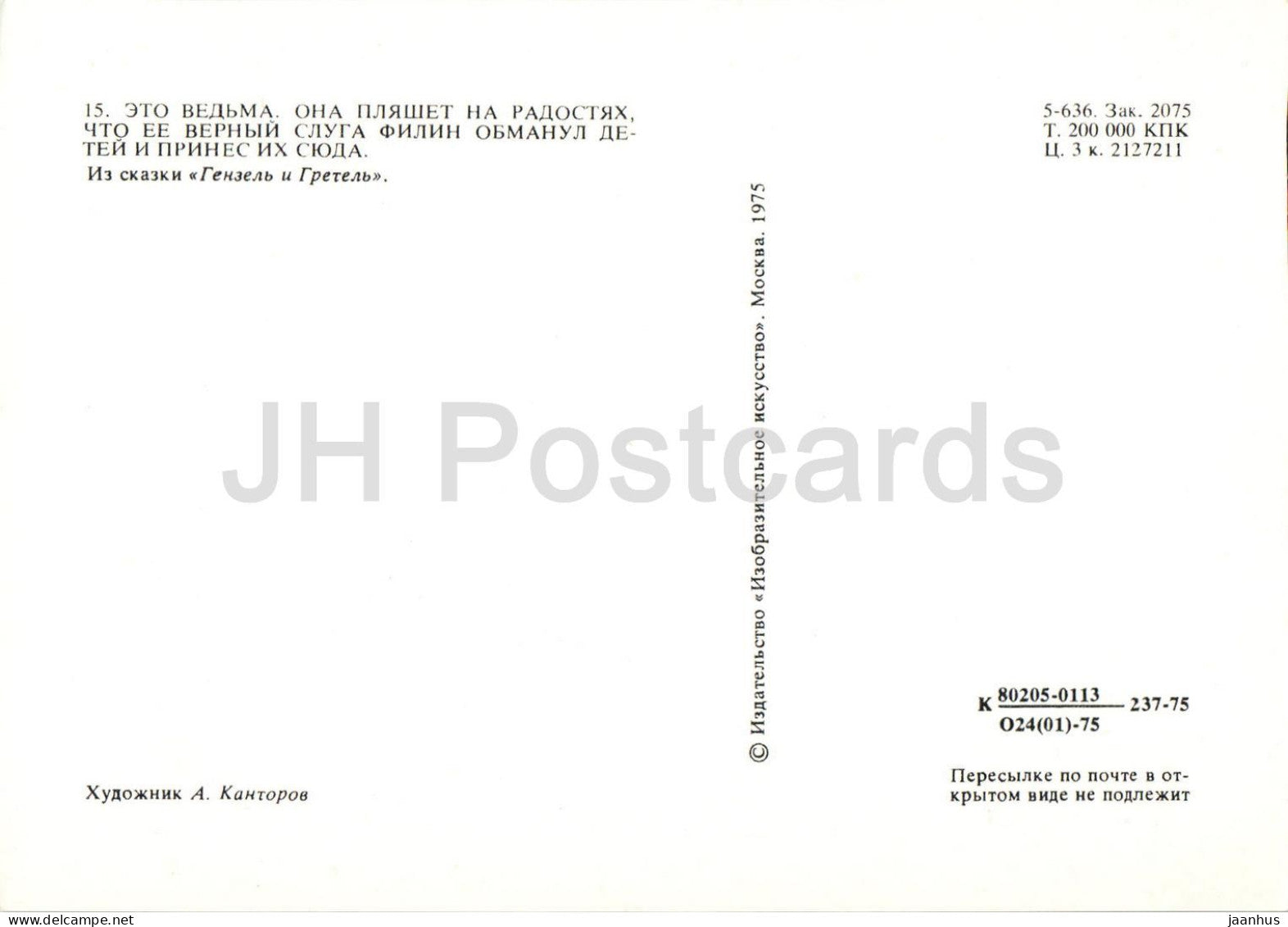 Hansel and Gretel by Brothers Grimm - owl - cats - dolls - Fairy Tale - 1975 - Russia USSR - unused