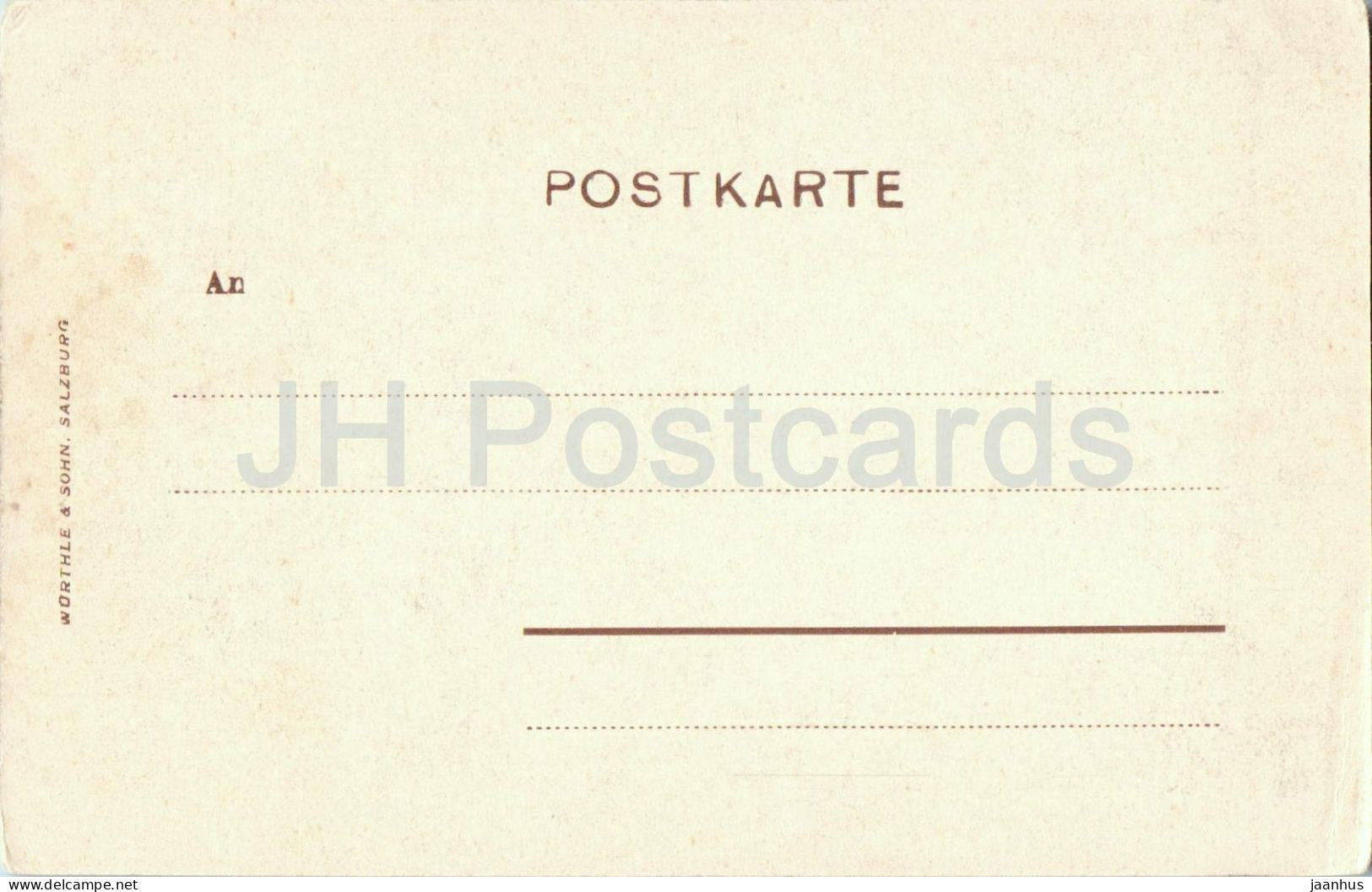 Hellbrunn - Monats-Schlossl - Horse statue and pond with castle view - old postcard - Austria - unused