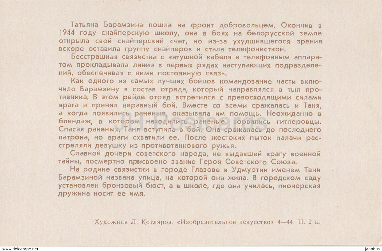 Heroes of WWII - Tatyana Baramzina - illustration - 1971 - Russia USSR - unused