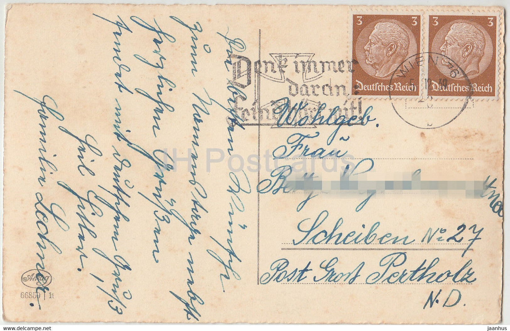 Herzlichen Gluckwunsch zum Namenstage - flowers - vase - old postcard - 1939 - Germany - used