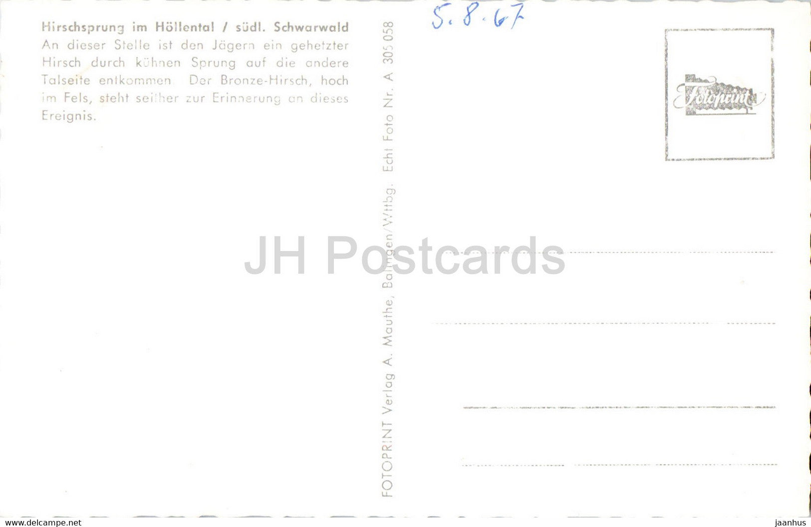 Hirschprung im Hollental - old postcard - Germany - unused