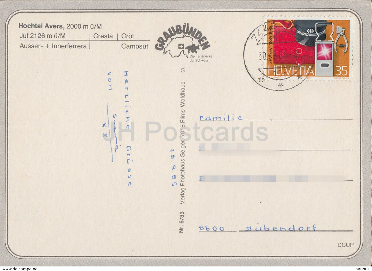 Hochtal Avers 2000 m - Juf - Cresta - Crot - Campsut - 1985 - Switzerland - used