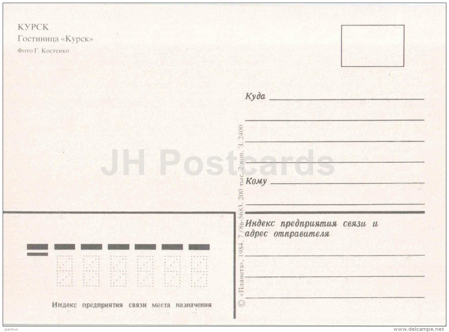 hotel Kursk - car Volga , Zaporozhets - Kursk - 1984 - Russia USSR - unused