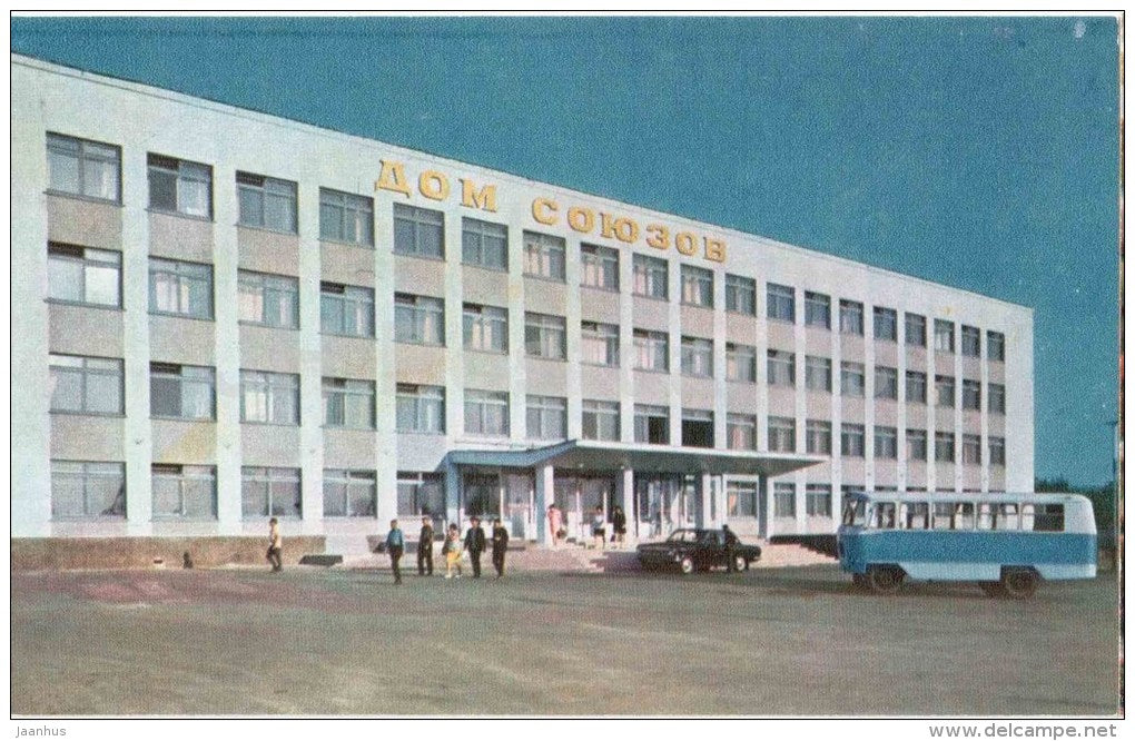 House of Unions - bus - car Volga - Cheboksary - Chuvashia - 1973 - Russia USSR - unused