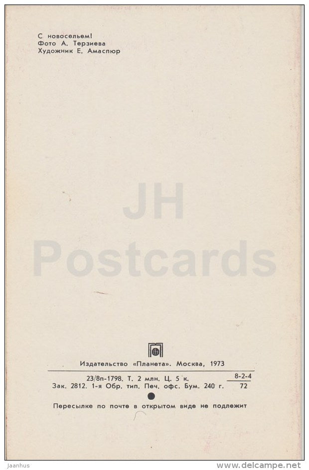 Housewarming greeting card - key - 1973 - Russia USSR - unused