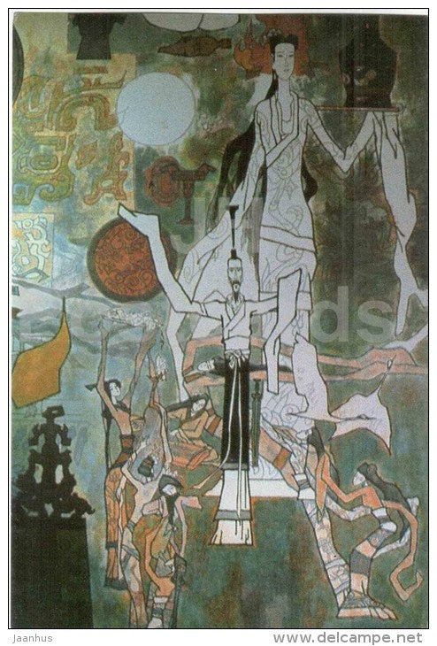 Huge mural inside Yellow Crane Tower - The Yellow Crane Tower - Wuhan - 1980s - China - unused