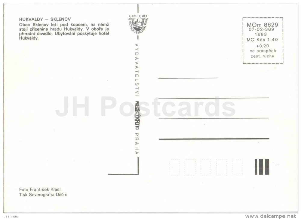 Hukvaldy - Sklenov - hotel - concert - castle - ruins - Czechoslovakia - Czech - unused