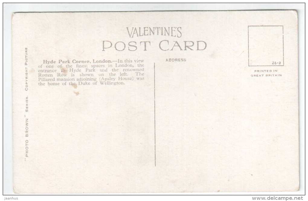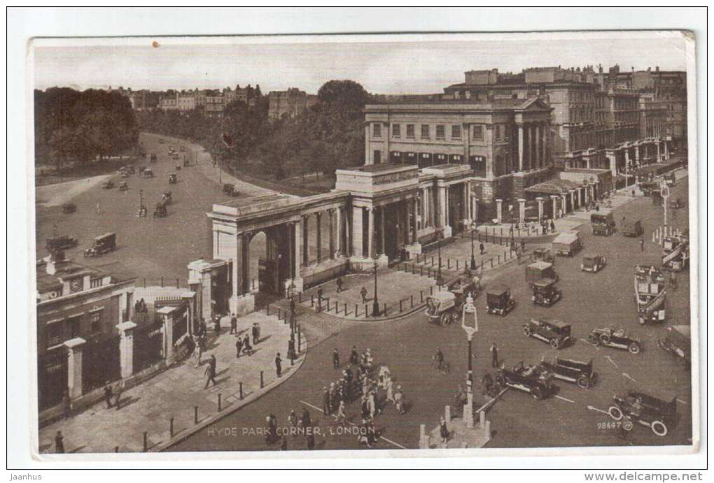 Hyde Park Corner - London - old cars - old postcard - United Kingdom , England - unused