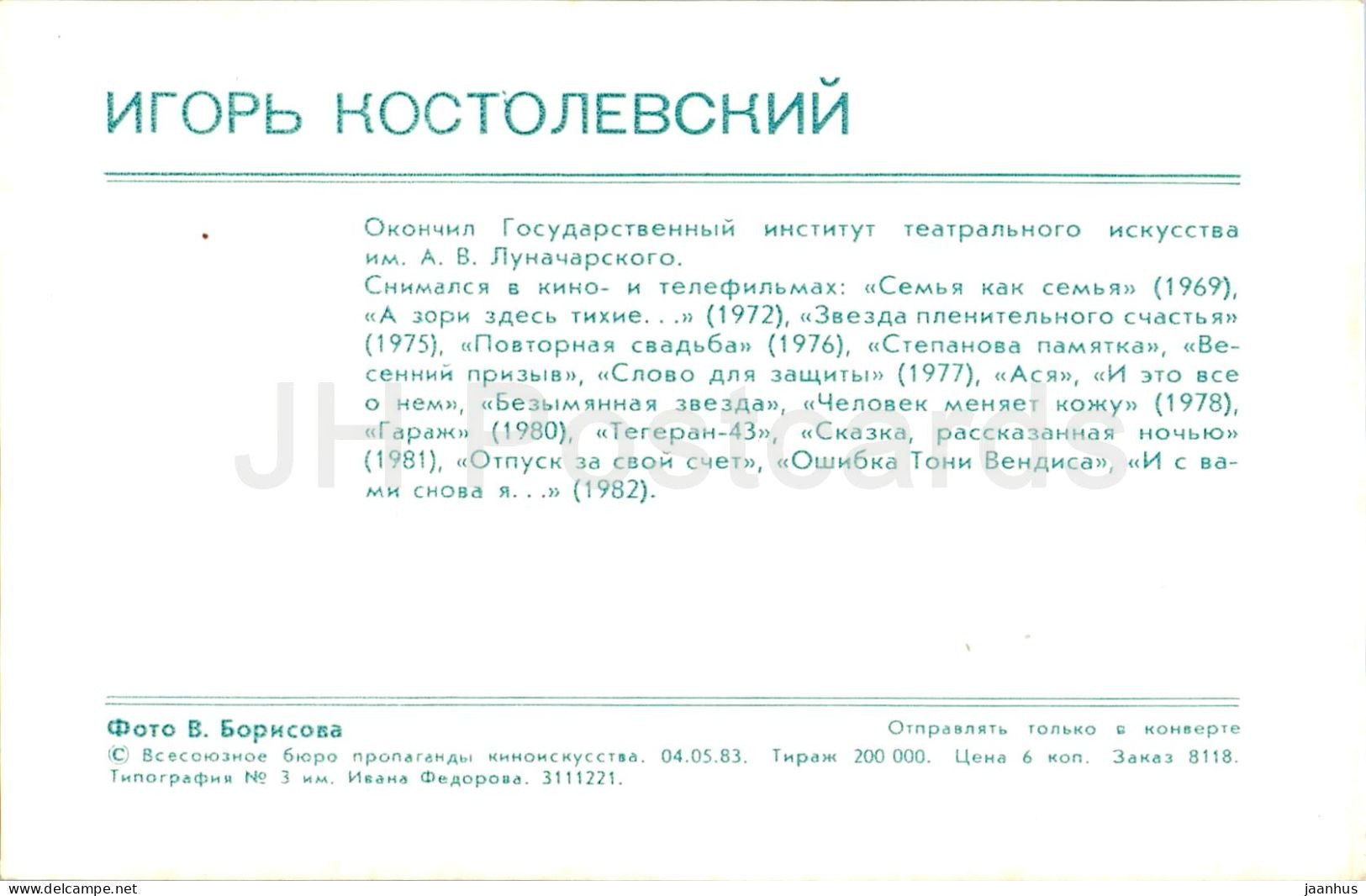 Igor Kostolevsky - Soviet - Russian actor - 1983 - Russia USSR - unused