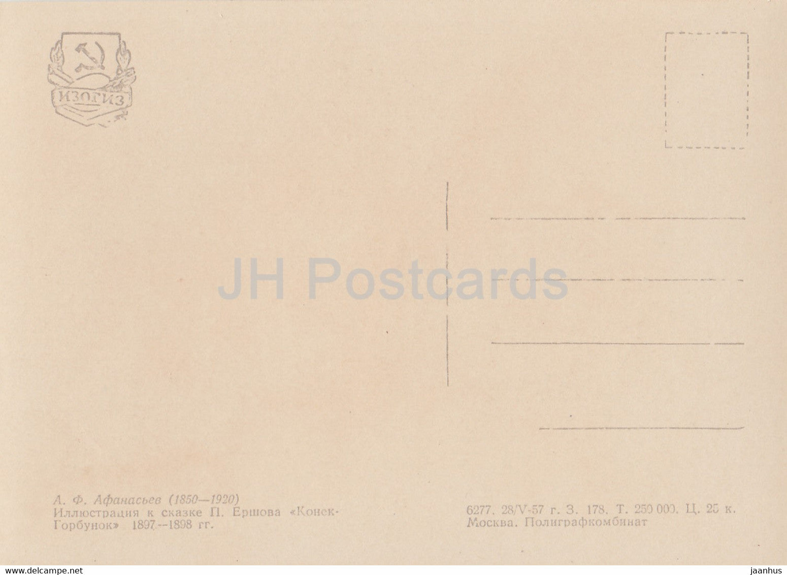 illustration by A. Afanasyev - The Little Humpbacked Horse - 2 - fairy tale by Yershov - 1957 - Russia USSR - unused