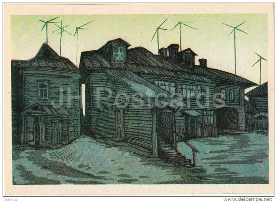 illustration by A. Karimov - Building on Malchanovsk street . Borovsk - 1976 - Russia USSR - unused
